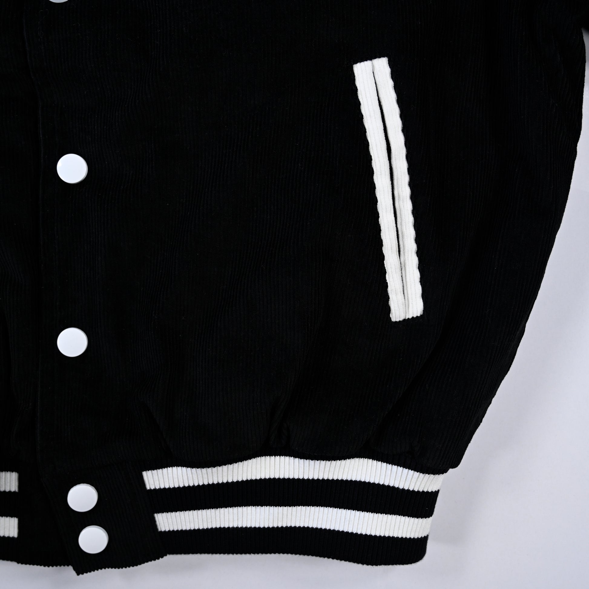 - Black / White Ribbing Along Cuffs & Waist